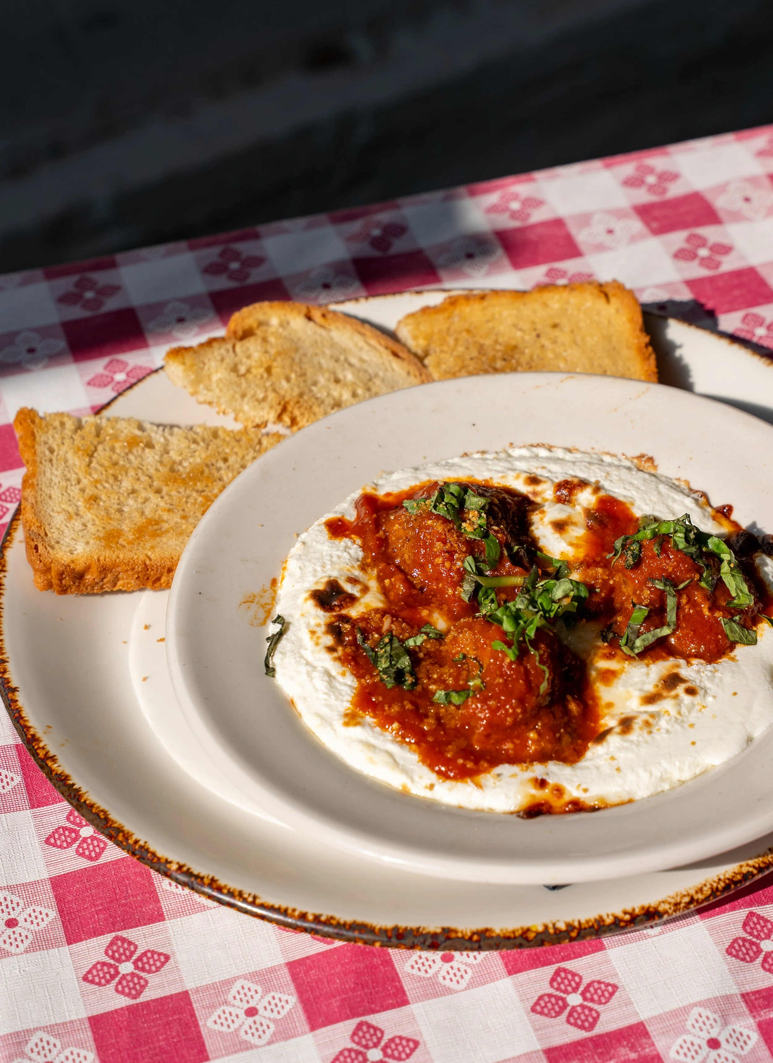 beef meatballs, baked sweet ricotta, mozzarella, marinara, garlic parmesan, basil, sourdough