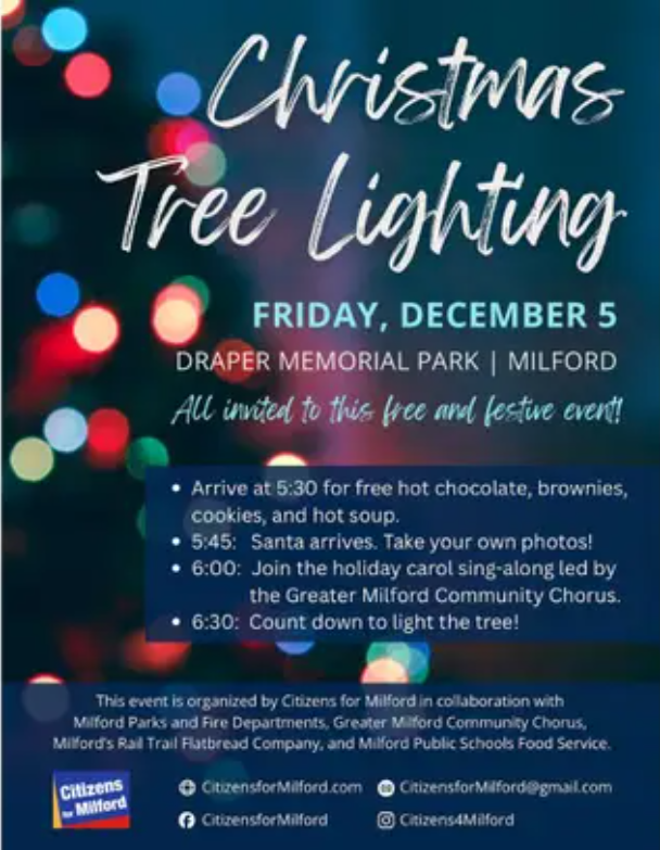 MILFORD, MA — For the 10th year in a row, Milford residents will celebrate the holidays with a Christmas tree lighting next month.
