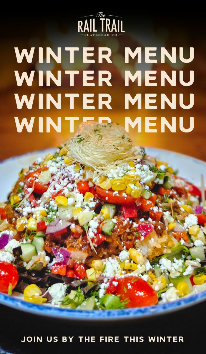 Whether you’re planning a cozy dinner, a laid-back brunch, or just looking for a place to warm up by the fire, our new winter menu is waiting for you at Rail Trail Flatbread Co. in Hudson and Milford, MA.